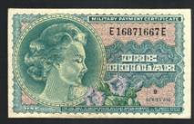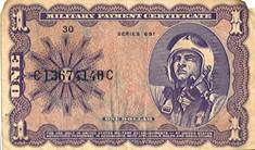 Three examples of One Dollar Military Payment Certificates used during the War